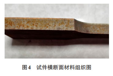 由圖4板件橫斷面材料組織圖,可以明顯看出鈦層和低碳鋼層的分布情況。