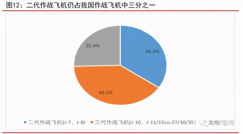 我國仍有三成比例作戰(zhàn)飛機是二代作戰(zhàn)飛機。這里作戰(zhàn)飛機包含有戰(zhàn)斗機、戰(zhàn) 斗轟炸機、強擊機、戰(zhàn)略轟炸機等裝備有進攻性武器系統(tǒng)的固定翼戰(zhàn)機。我國作戰(zhàn) 飛機中,有 J-7、J-8 二代作戰(zhàn)飛機 561 架,占我國作戰(zhàn)飛機比例高達(dá) 34.5%;三代 作戰(zhàn)飛機 J-10 有 260 架、J-11/15su-27/30/35 有 391 架,合計 651 架,占我國作 戰(zhàn)飛機比例為 40.1%。美國作戰(zhàn)飛機基本上是三代以上作戰(zhàn)飛機,并擁有四代作戰(zhàn) 飛機 F-22 178 架,F(xiàn)-35 214 架。二代作戰(zhàn)飛機已經(jīng)不適合現(xiàn)代戰(zhàn)爭,隨著我國第 三代作戰(zhàn)飛機日趨成熟,新型戰(zhàn)機殲-16,殲-10c 以及五代隱身戰(zhàn)斗機殲-20 的相 繼服役,未來二代作戰(zhàn)飛機將逐漸退役。