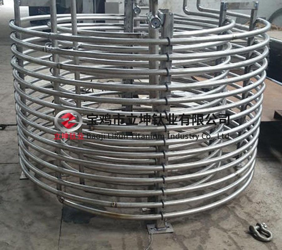 鈦盤(pán)管常用來(lái)作為容器內(nèi)部加熱和冷卻。盤(pán)管的固定方式有不可拆與可拆兩種,這要根據(jù)物料的情節(jié)程度及服飾情況決定,但在設(shè)計(jì)上盡可能用可拆式,以便于鈦盤(pán)管的清潔與檢修。鈦盤(pán)管主要應(yīng)用于鈦換熱器設(shè)備,用來(lái)加熱或降溫管路中介質(zhì)。